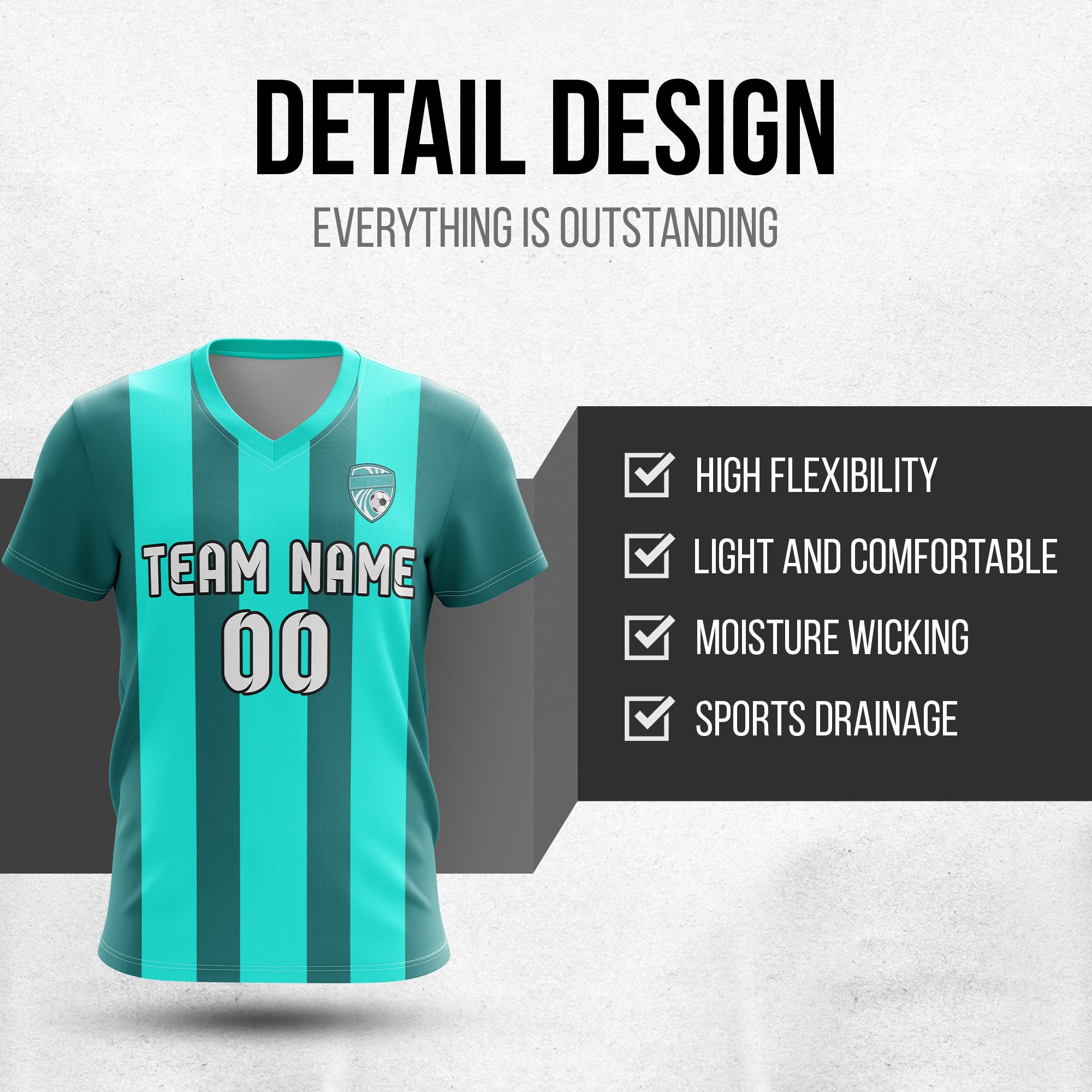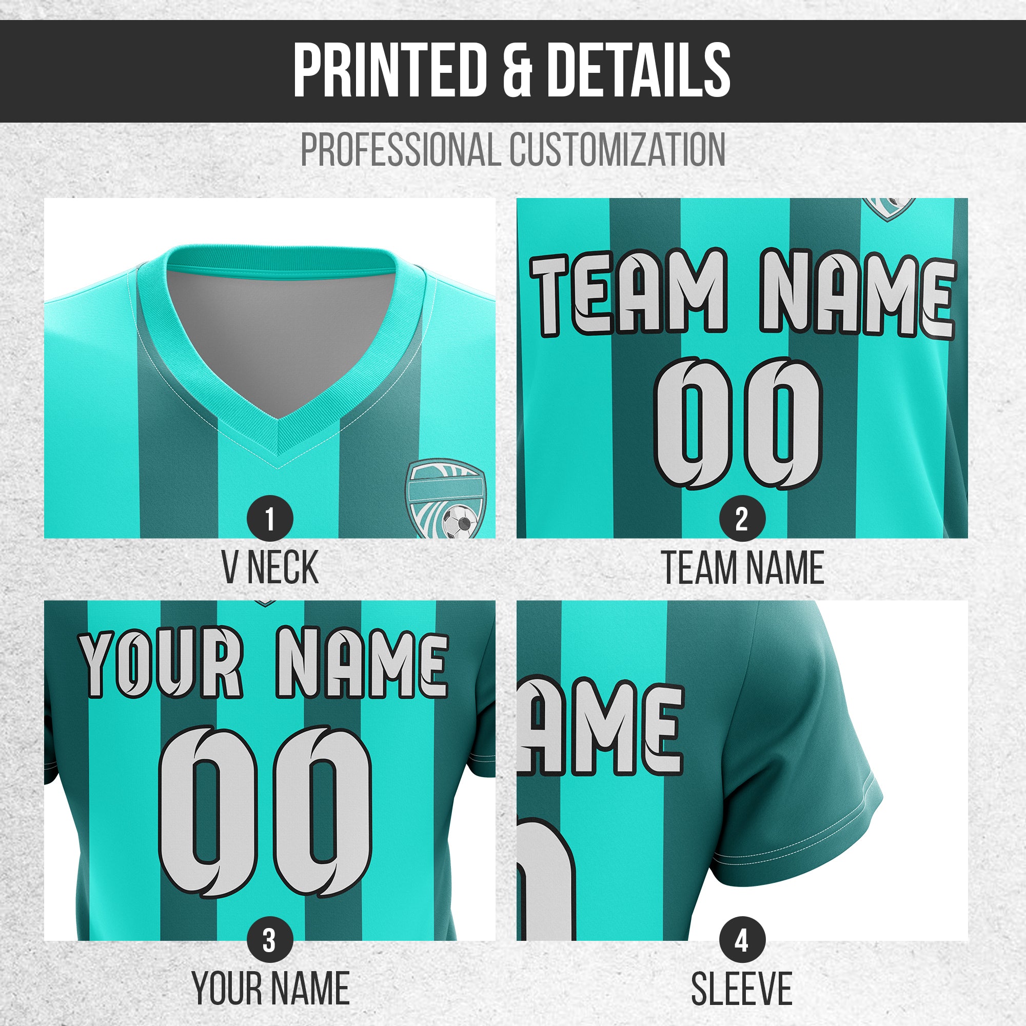 Soccer Jersey - V Neck - Stripe - Design 1 - Aqua