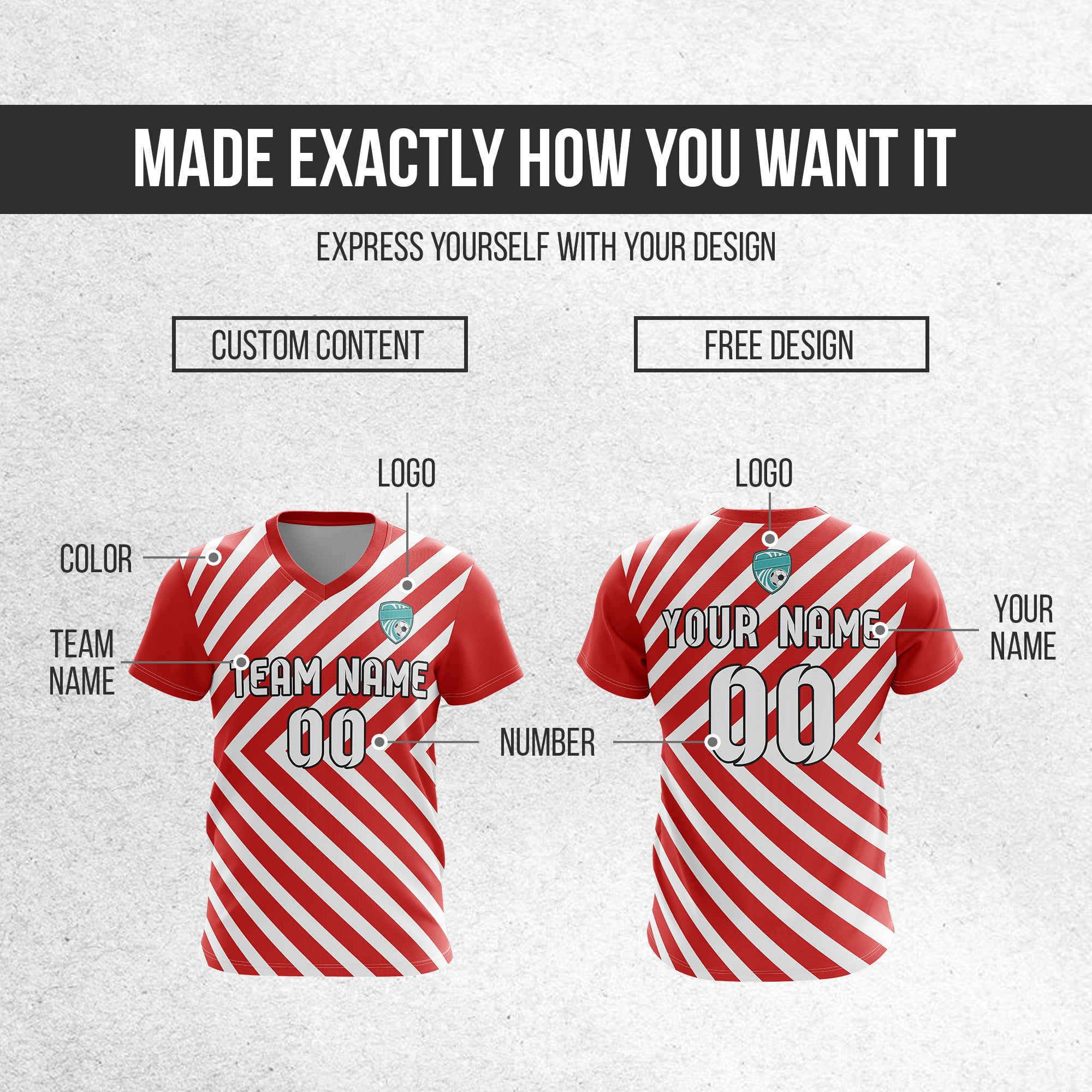 Soccer Jersey - V Neck - Stripe - Design 3 - Red