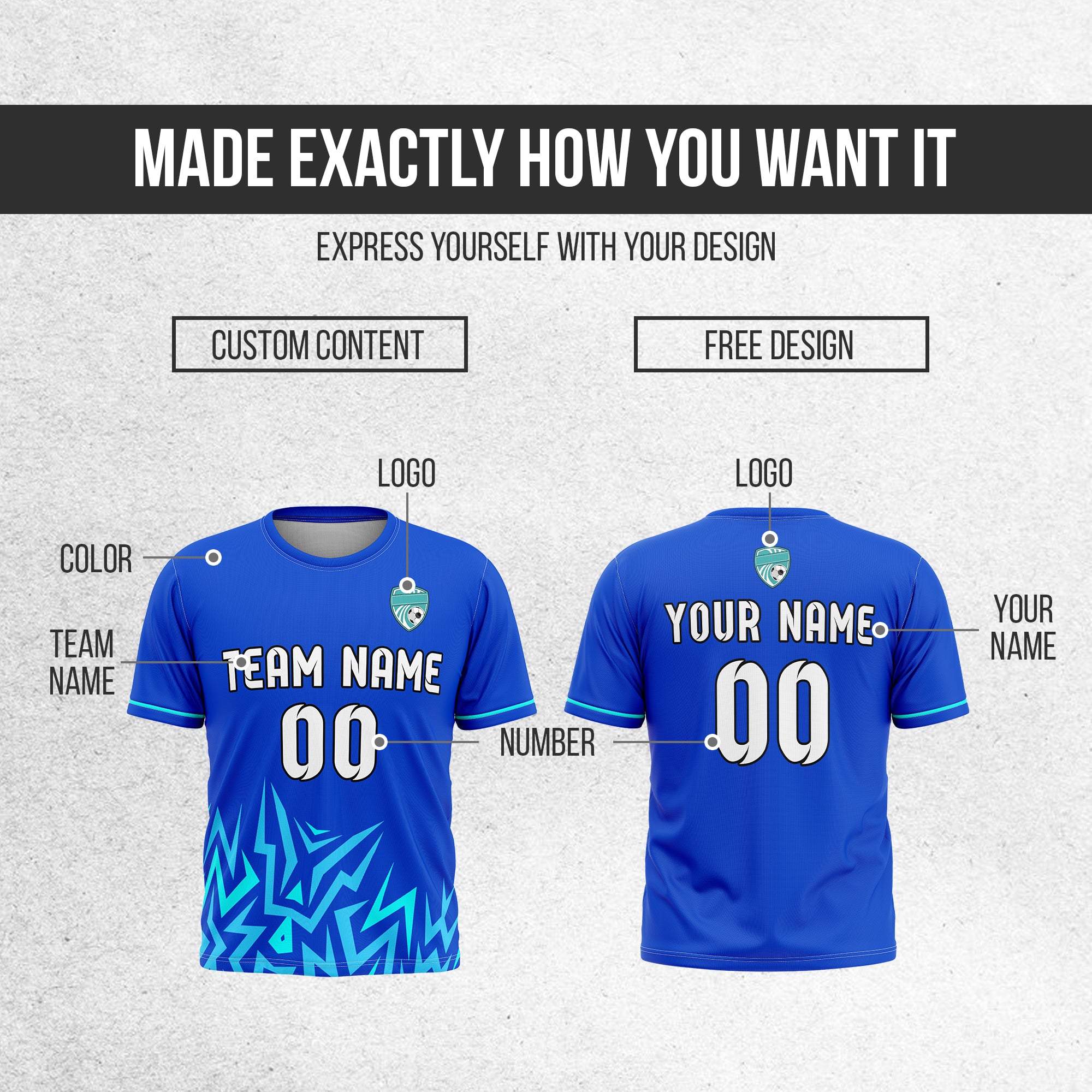 Soccer Jersey - Round Neck - Side Pattern - Design 1 - Blue