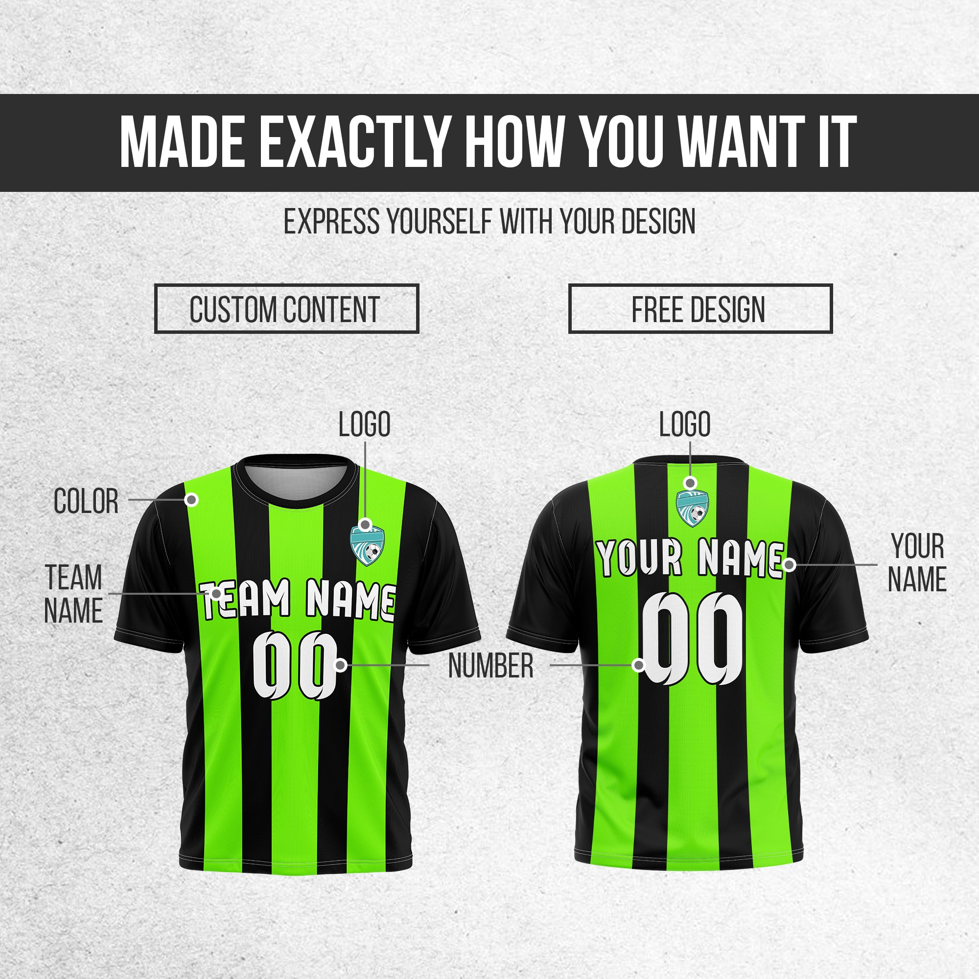 Soccer Jersey - Round Neck - Stripes - Design 1 - Black