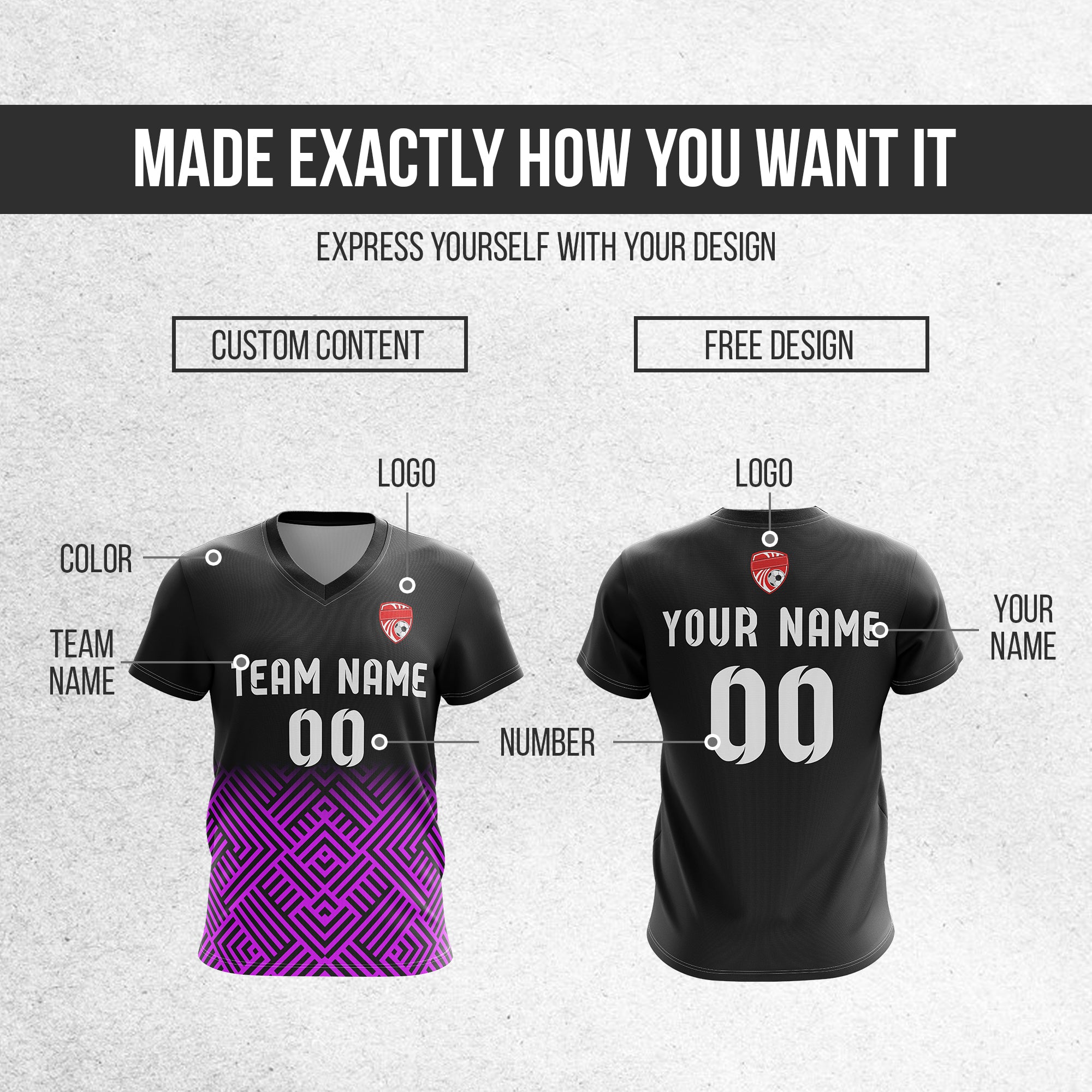 Soccer Jersey - V Neck - Side Pattern- Design 2 -Black