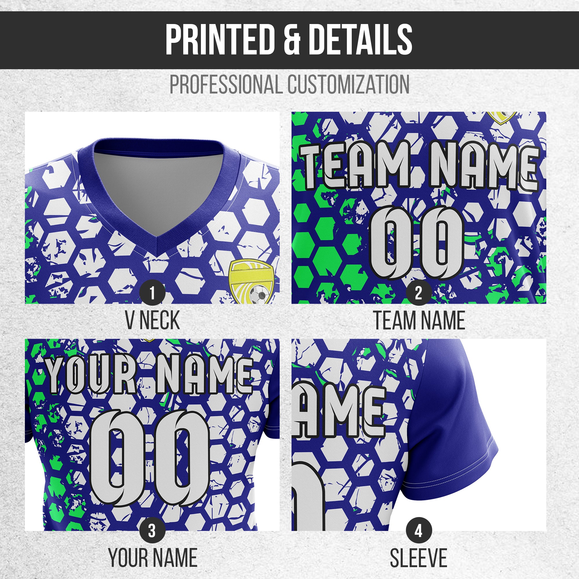 Soccer Jersey - V Neck - Full Pattern- Design 1 - Navy