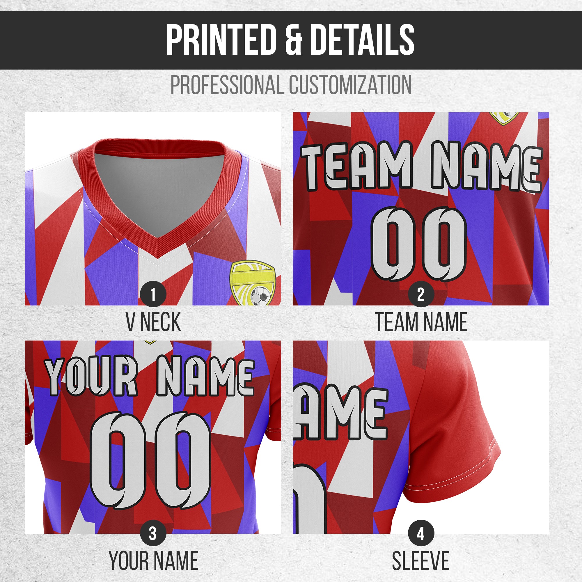 Soccer Jersey - V Neck - Full Pattern- Design 3 - Red