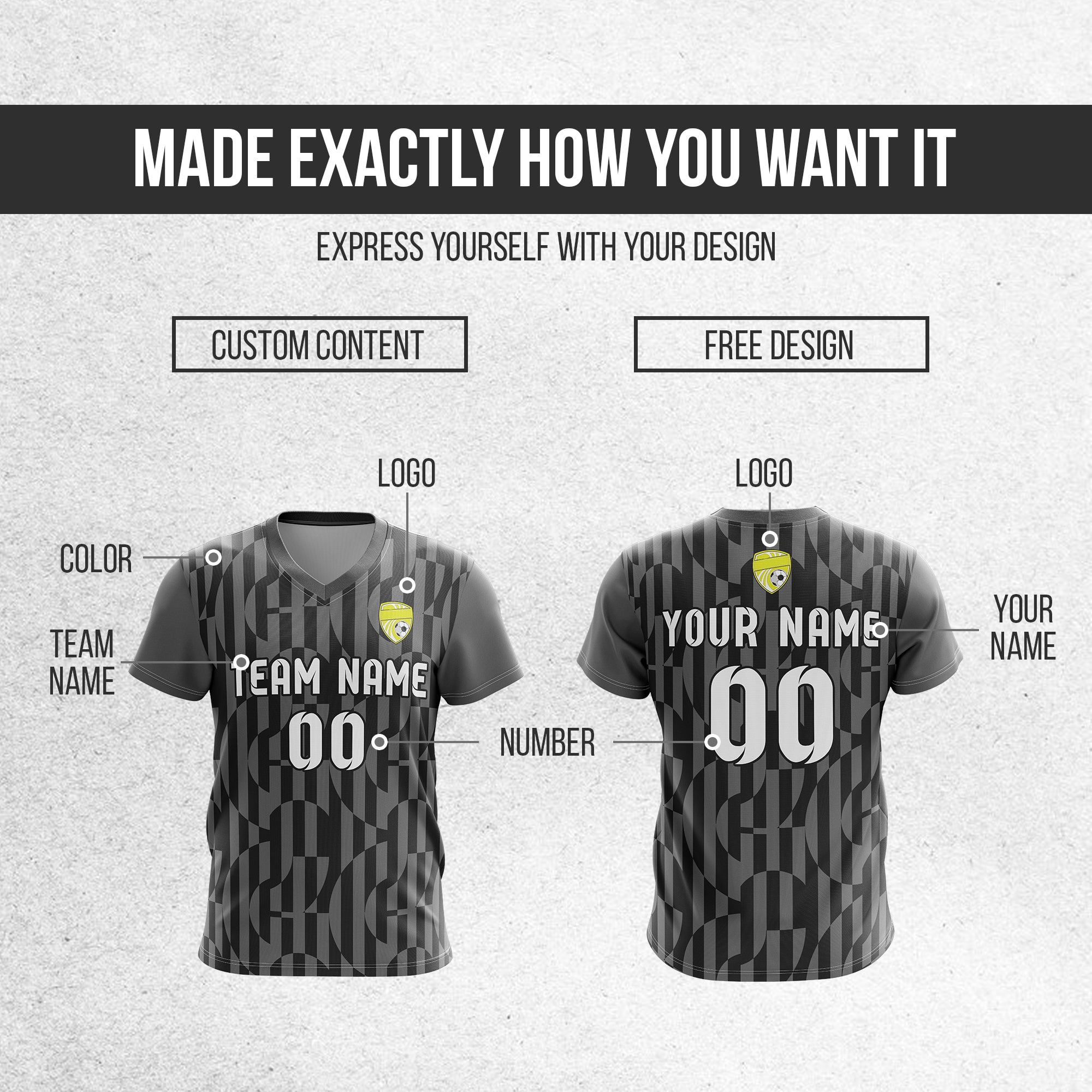 Soccer Jersey - V Neck - Full Pattern- Design 4 - Dark Grey