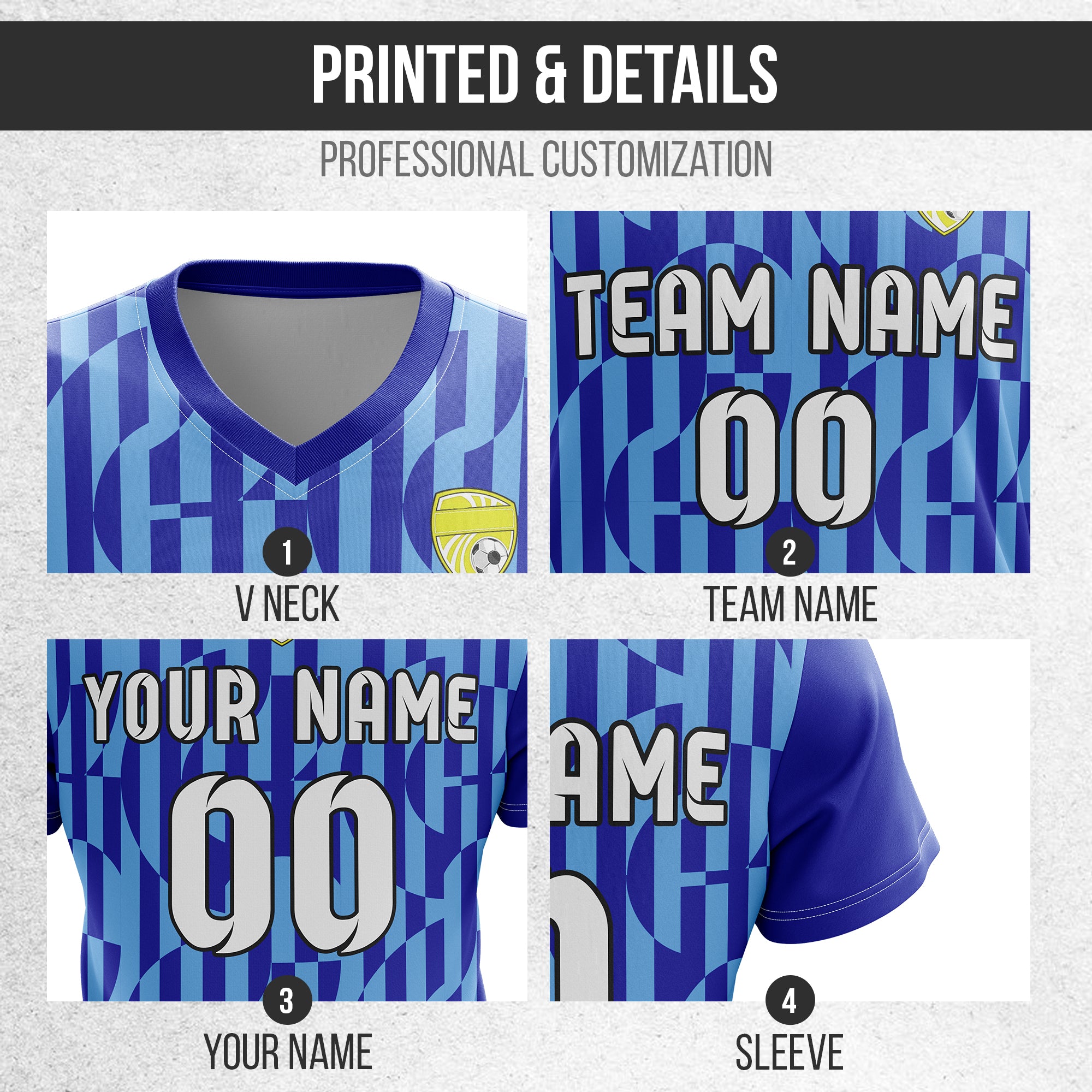 Soccer Jersey - V Neck - Full Pattern- Design 4 - Navy