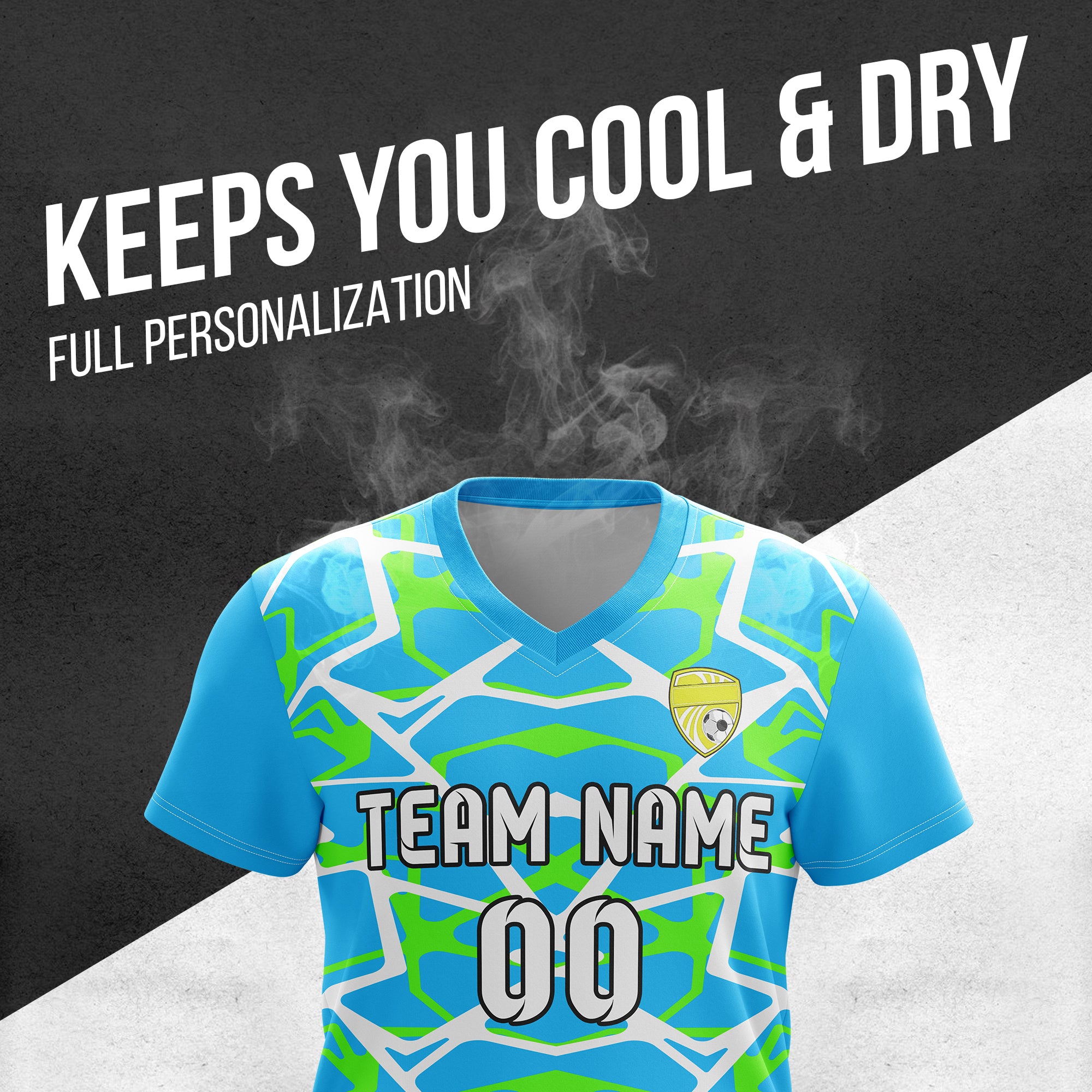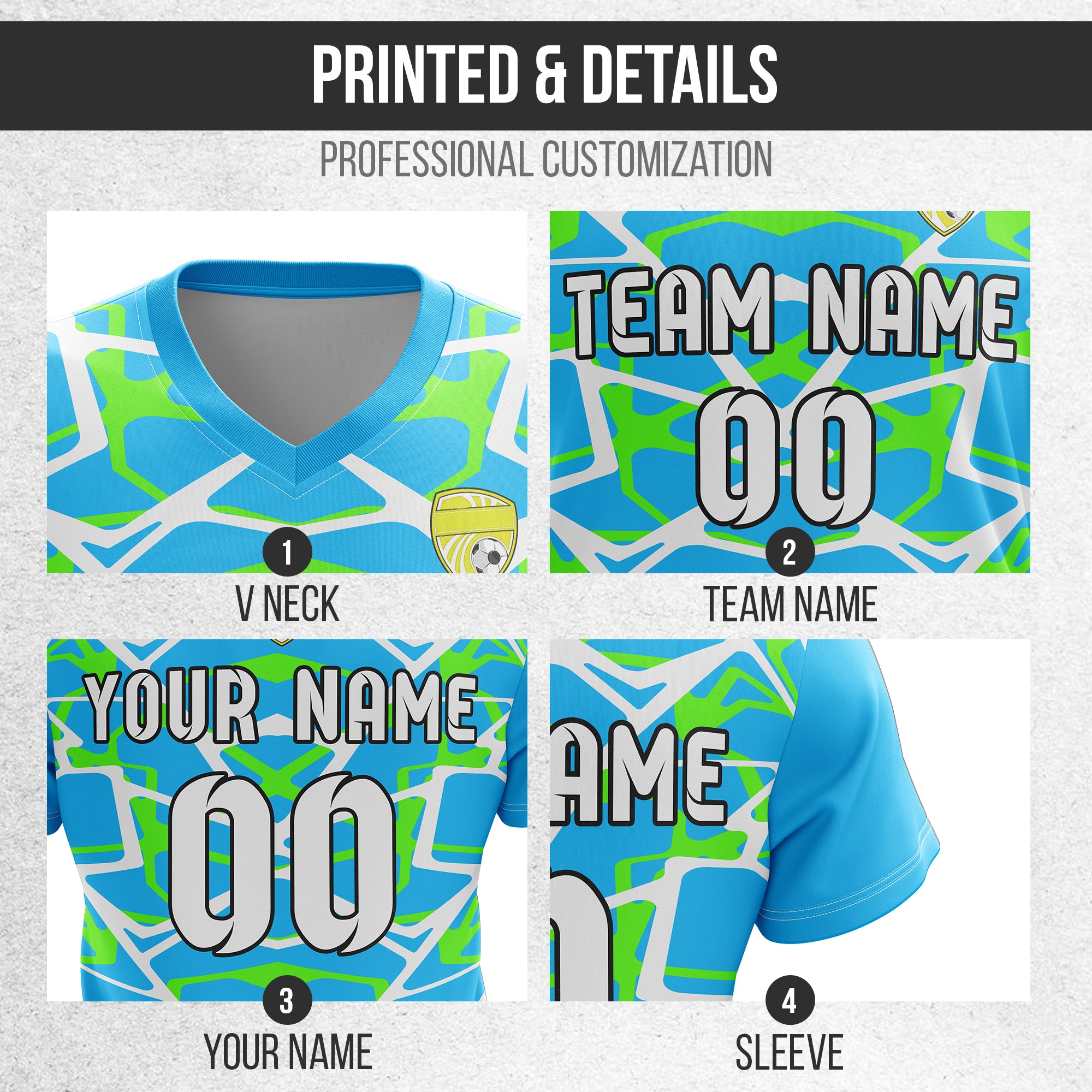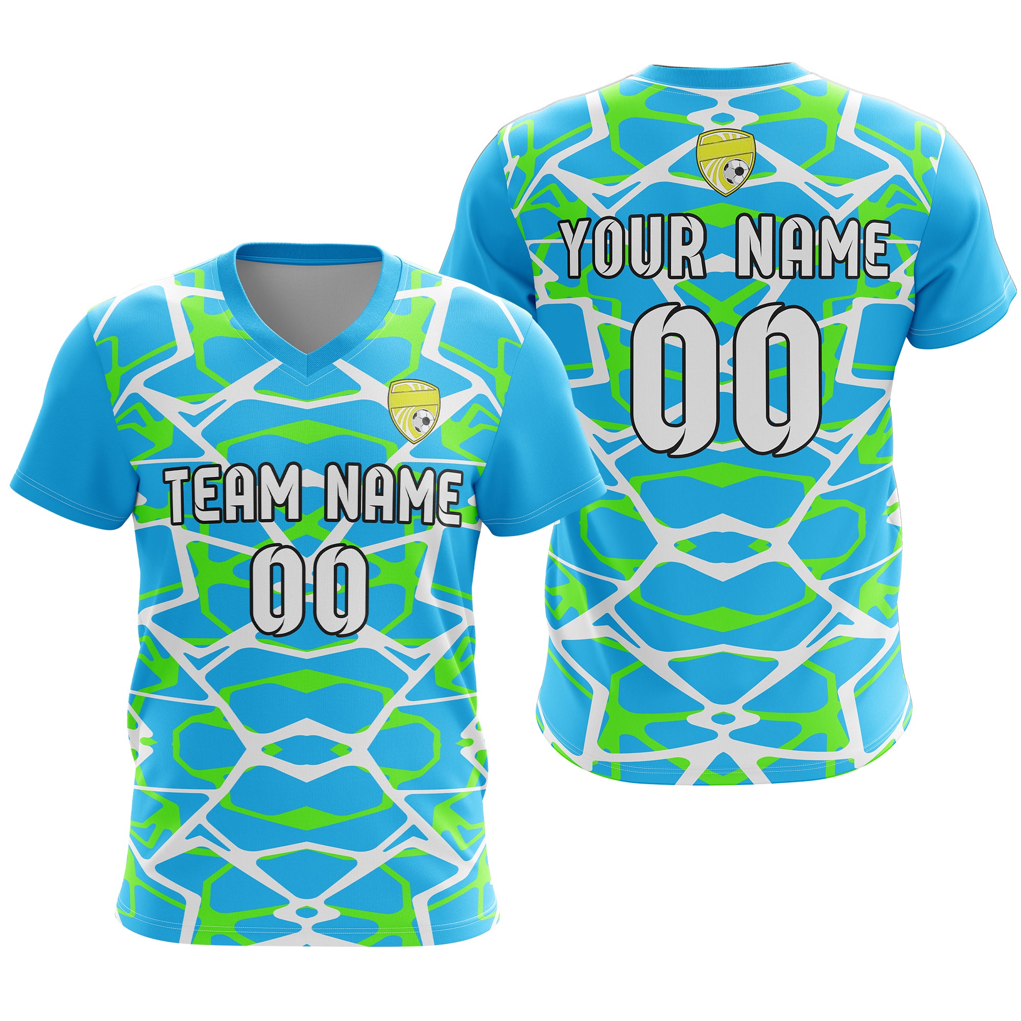 Soccer Jersey - V Neck - Full Pattern- Design 5 - Blue