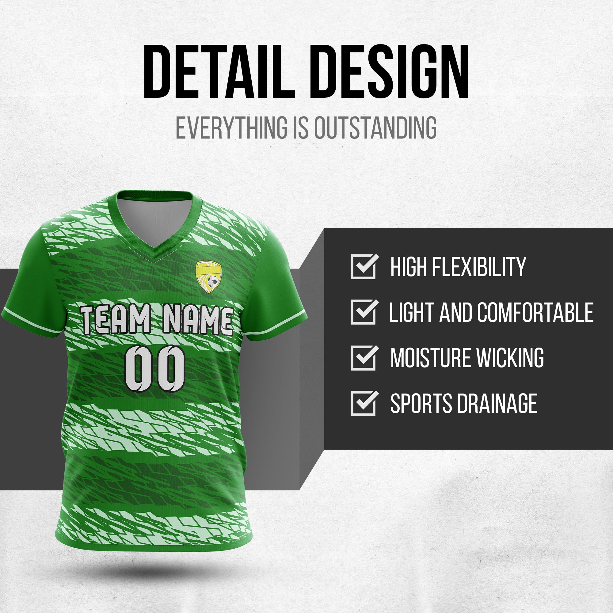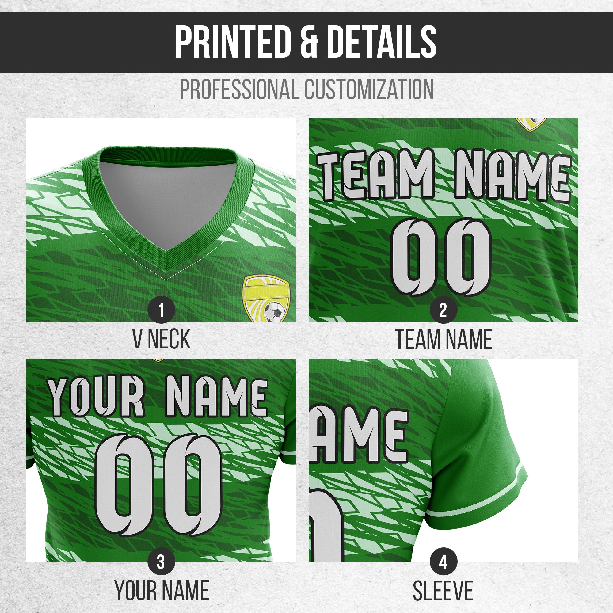 Soccer Jersey - V Neck - Full Pattern- Design 2 - Green