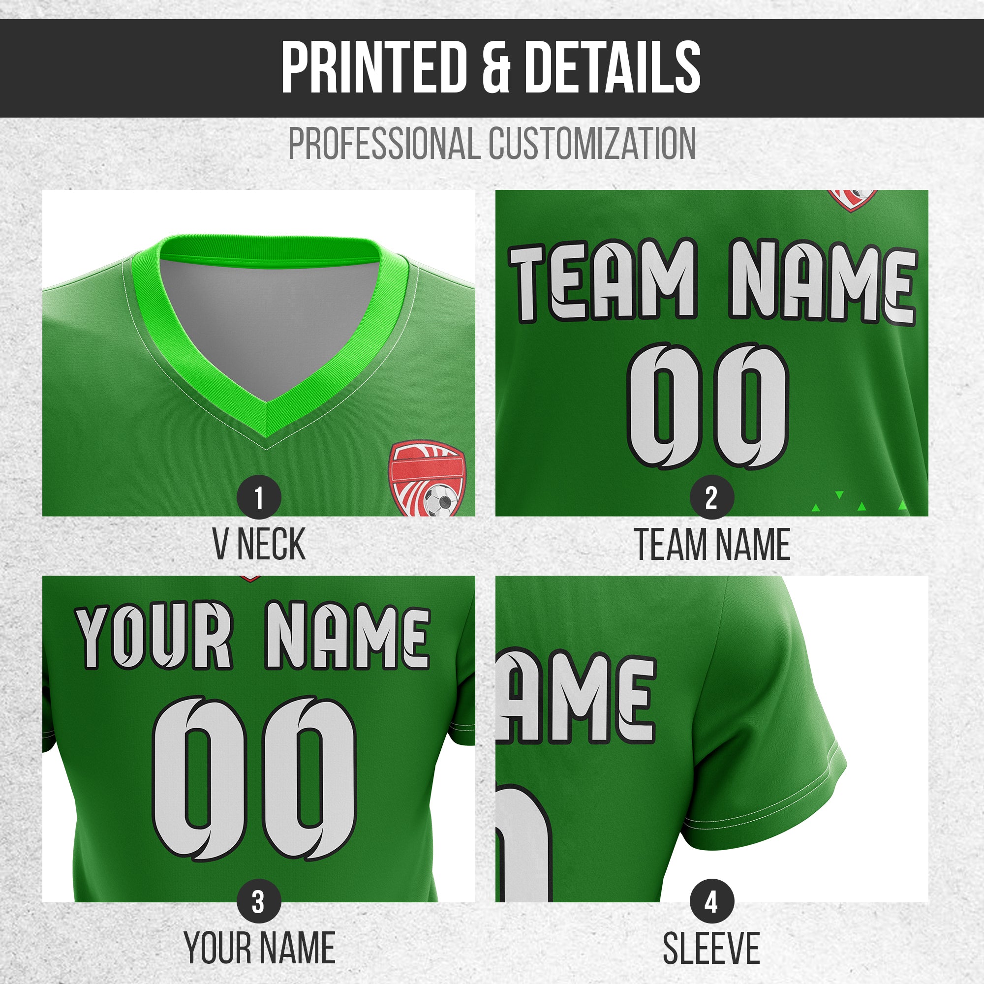 Soccer Jersey - V Neck - Side Pattern- Design 3 - Green