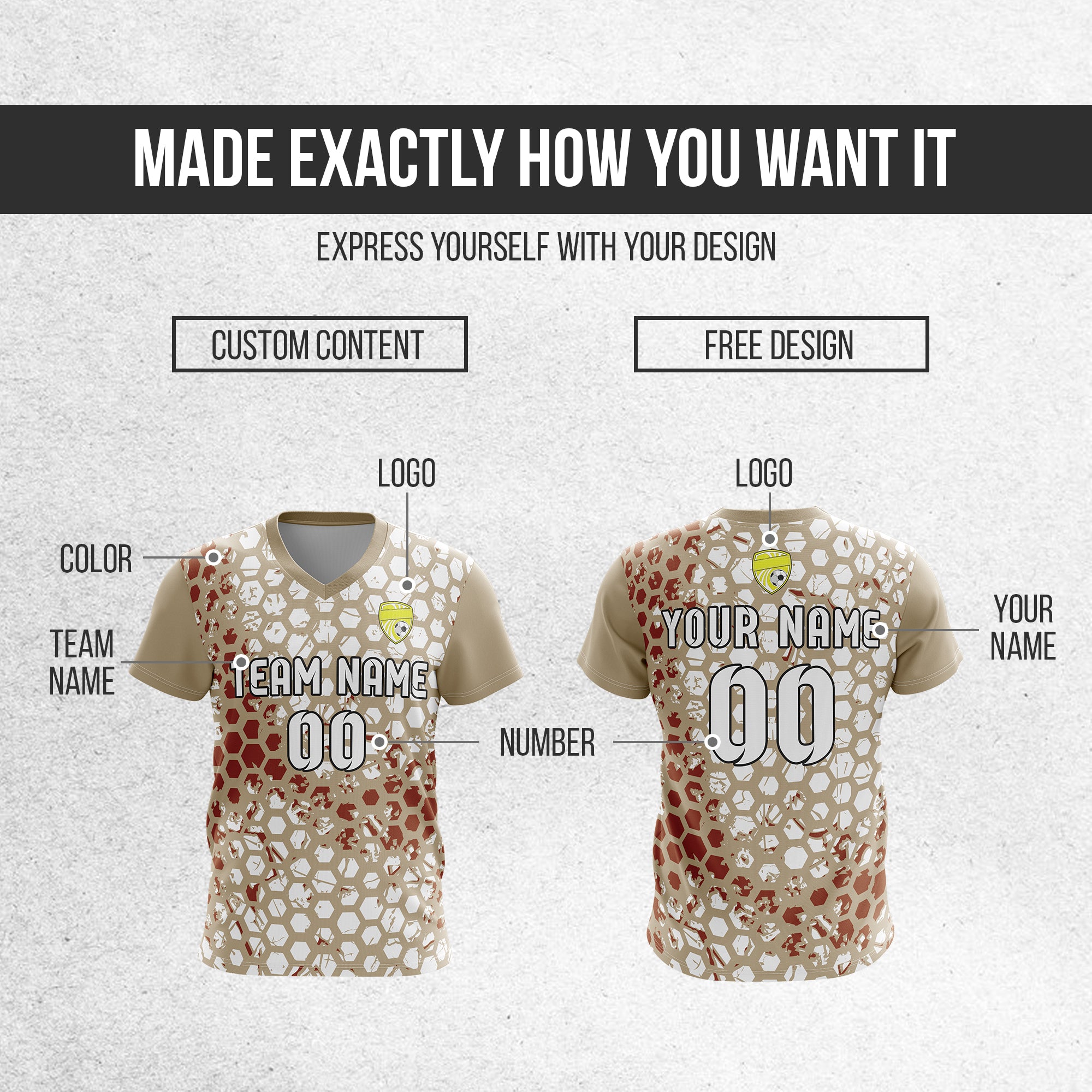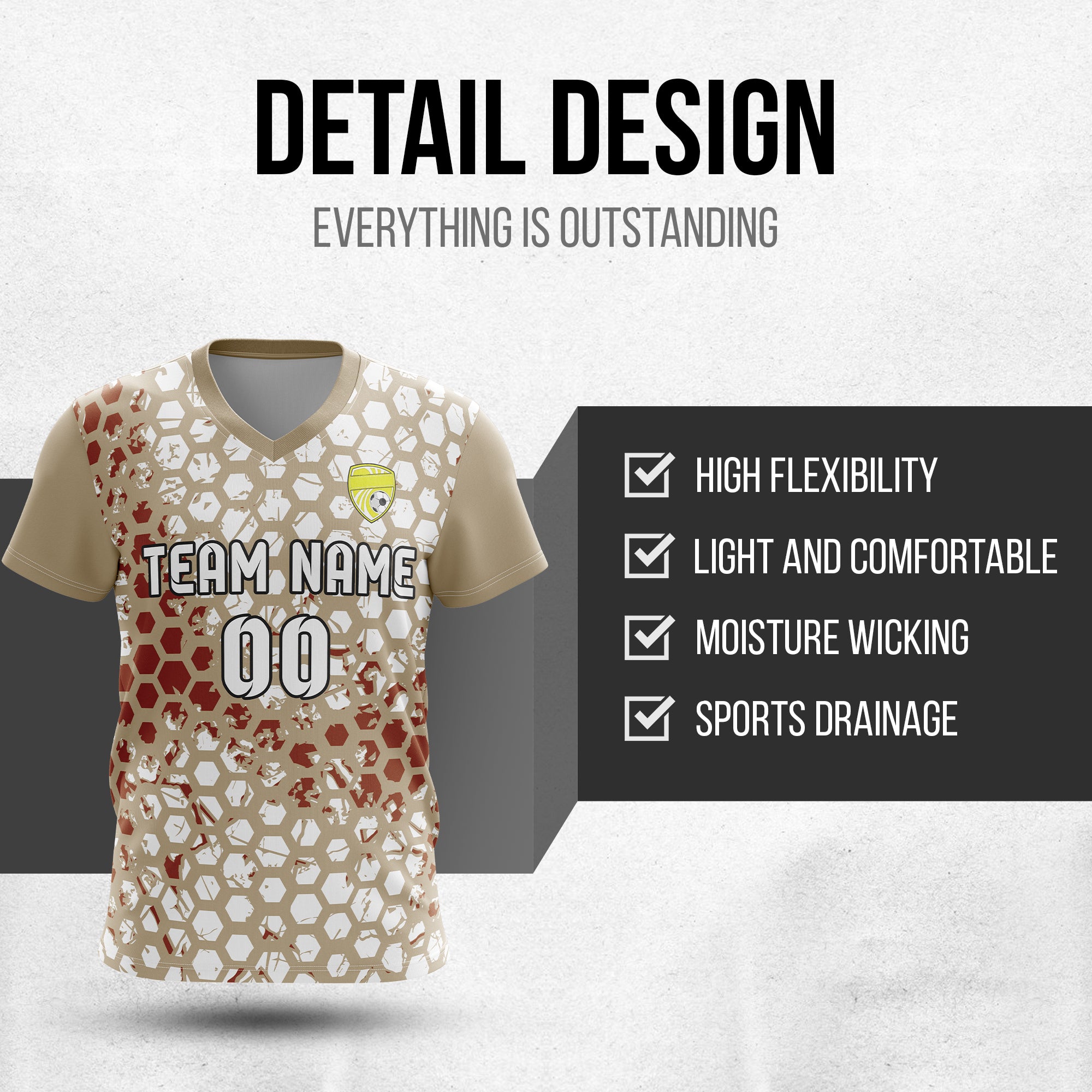 Soccer Jersey - V Neck - Full Pattern- Design 1 - Khakhii
