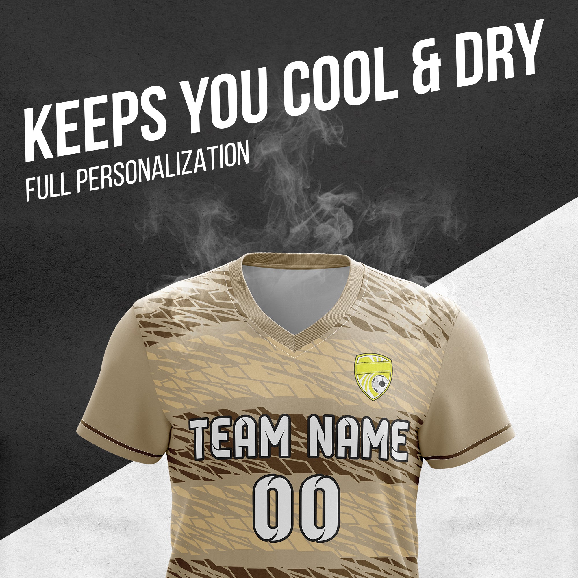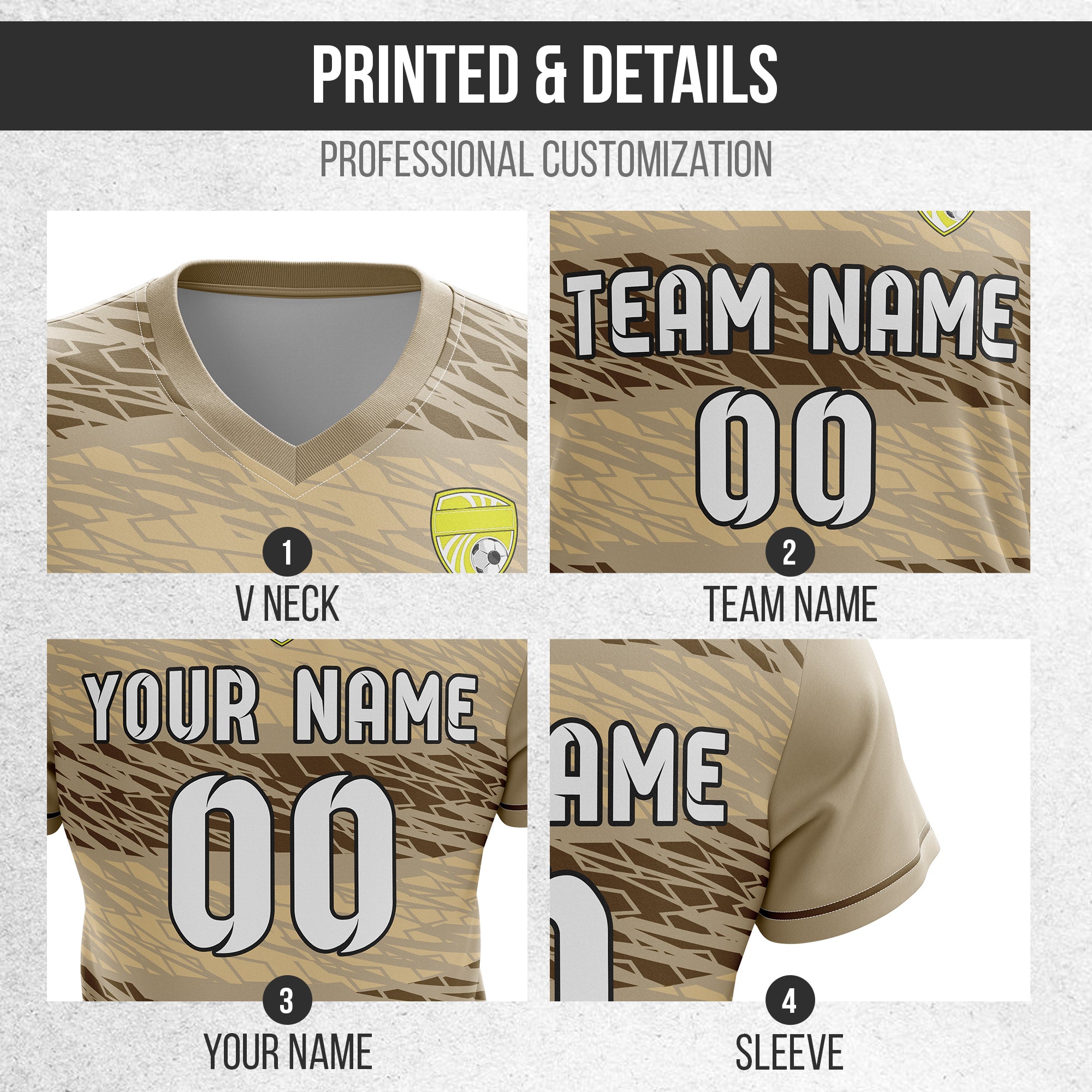 Soccer Jersey - V Neck - Full Pattern- Design 2 - Khakhii