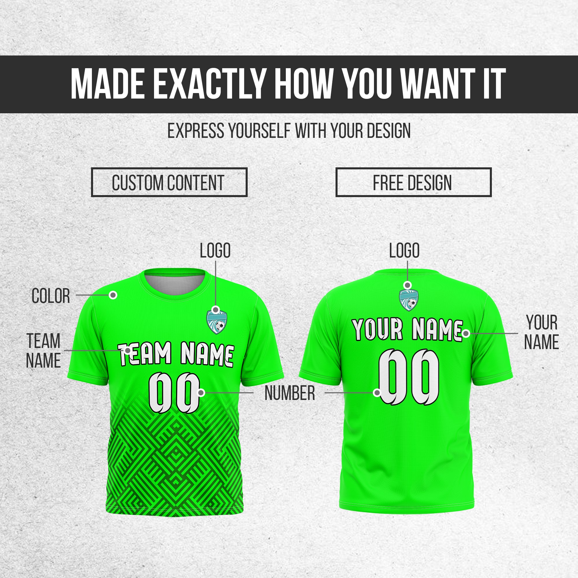 Soccer Jersey - Round Neck - Side Pattern - Design 2 - Neon Green