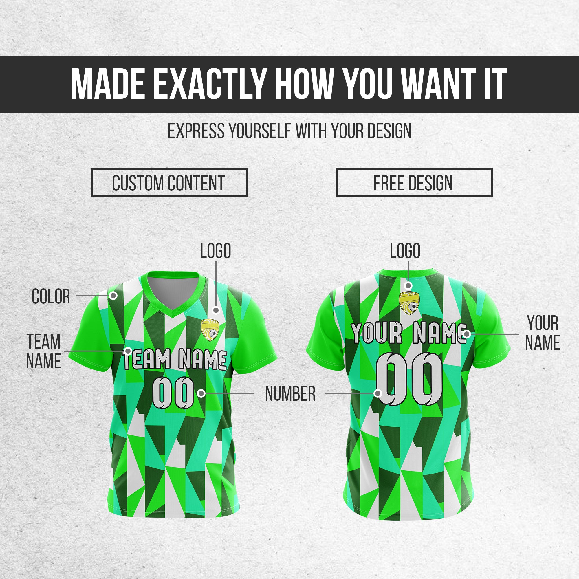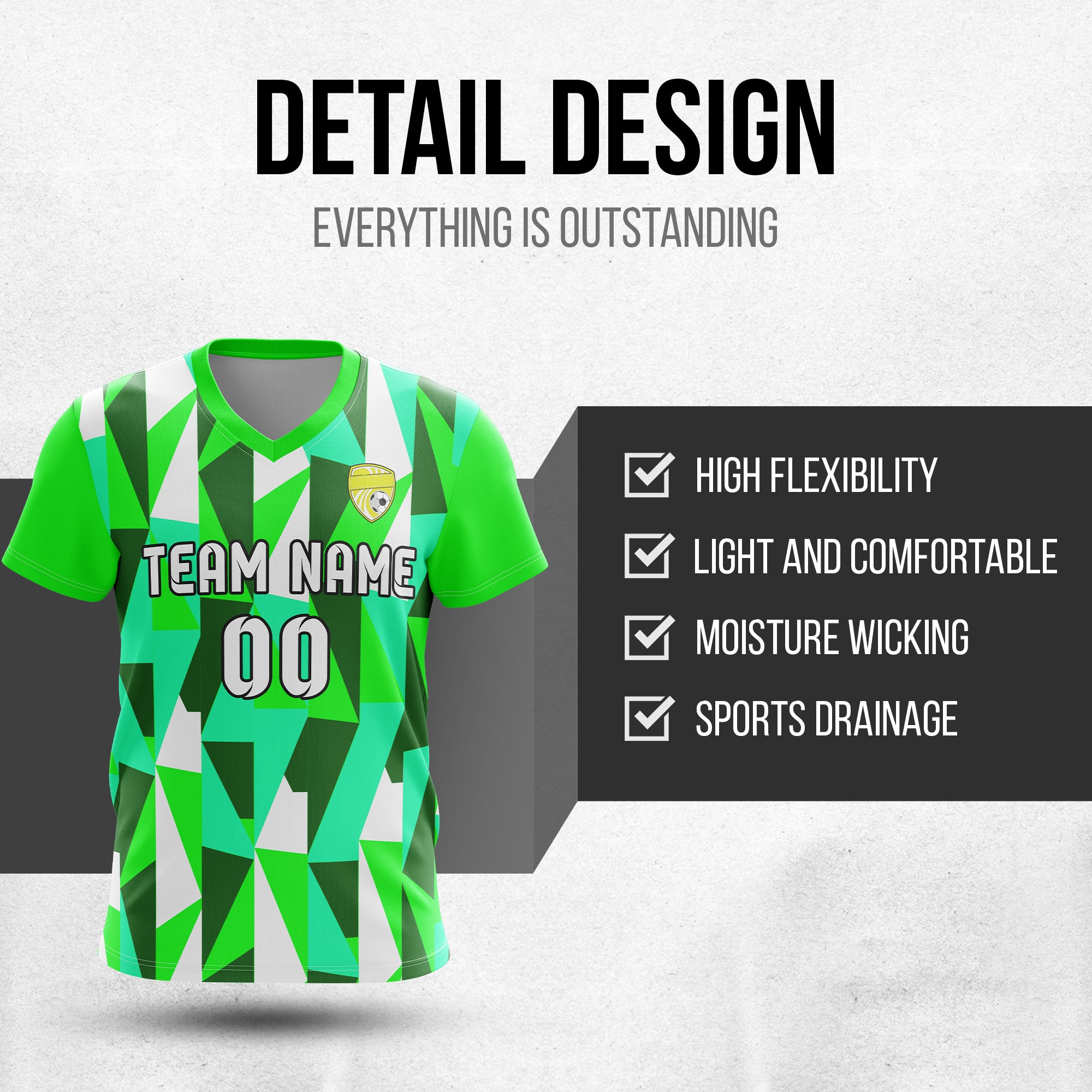 Soccer Jersey - V Neck - Full Pattern- Design 3 - neon Green