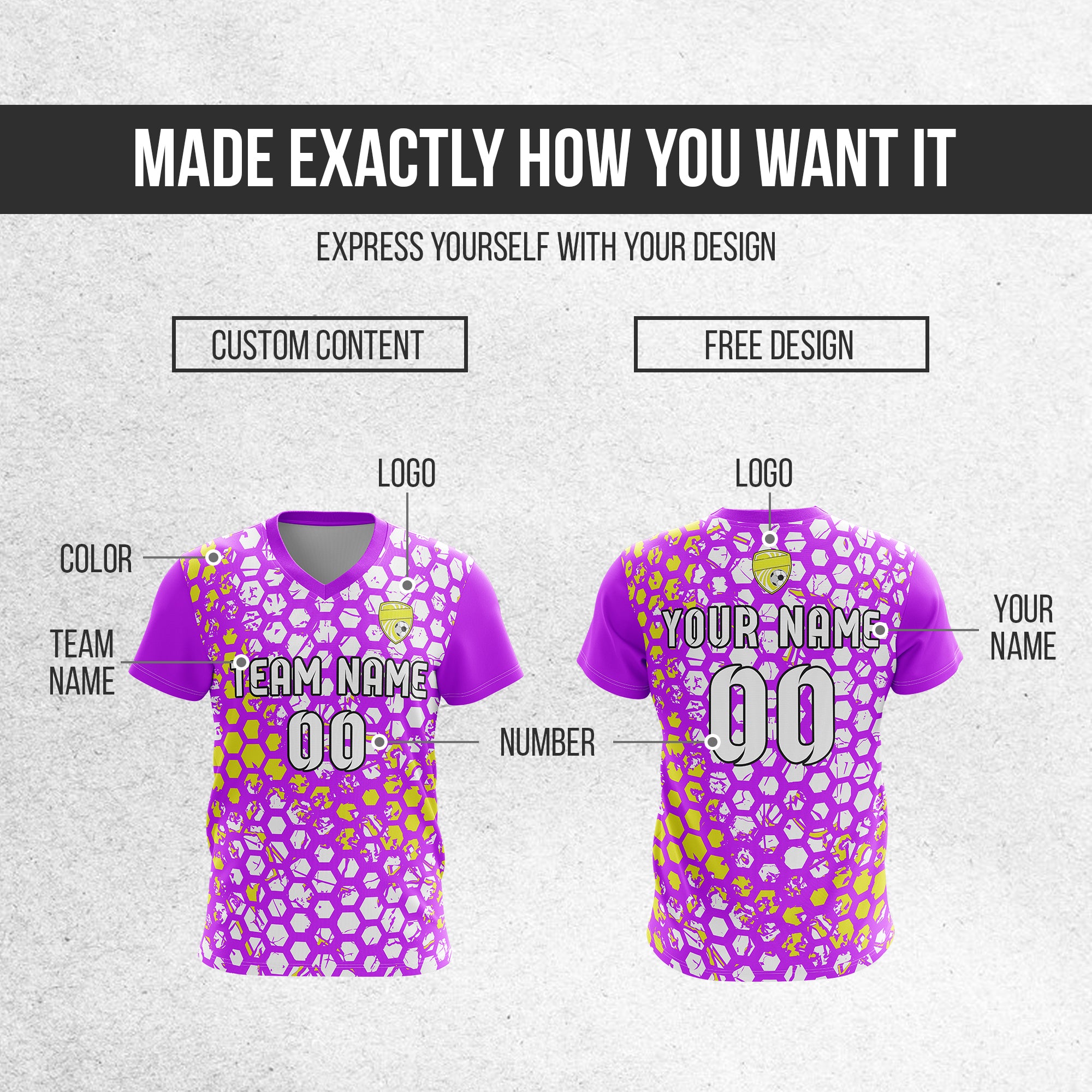 Soccer Jersey - V Neck - Full Pattern- Design 1 - Purple