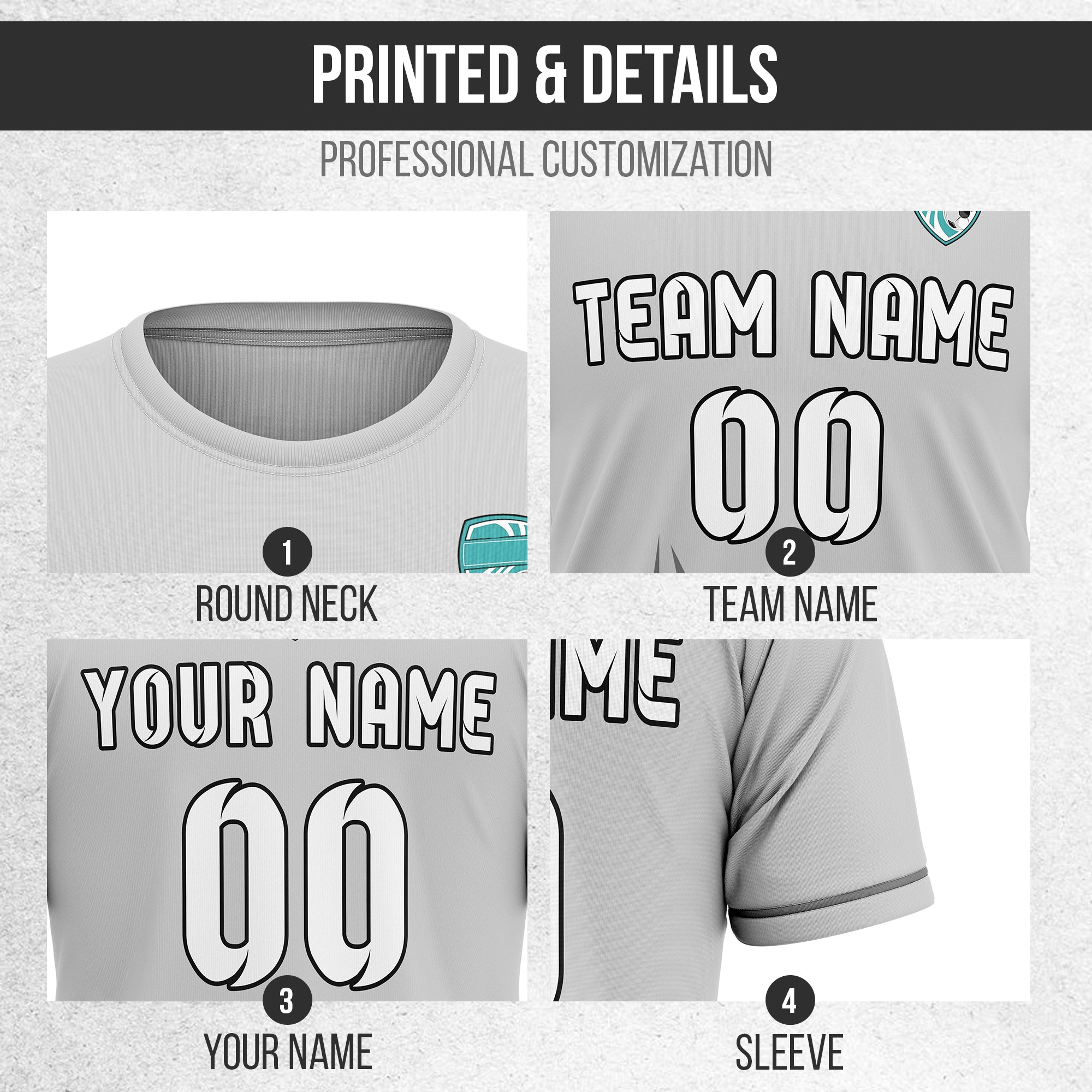 Soccer Jersey - Round Neck - Side Pattern - Design 1 - Grey