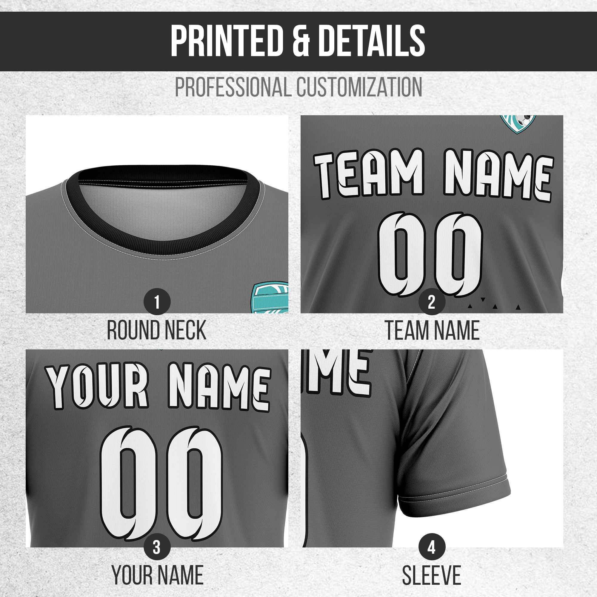 Soccer Jersey - Round Neck - Side Pattern - Design 3 - Dark Grey