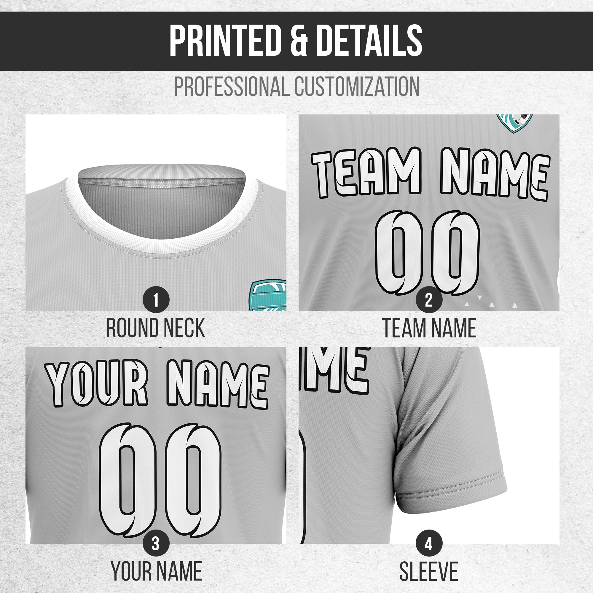 Soccer Jersey - Round Neck - Side Pattern - Design 3 - Grey