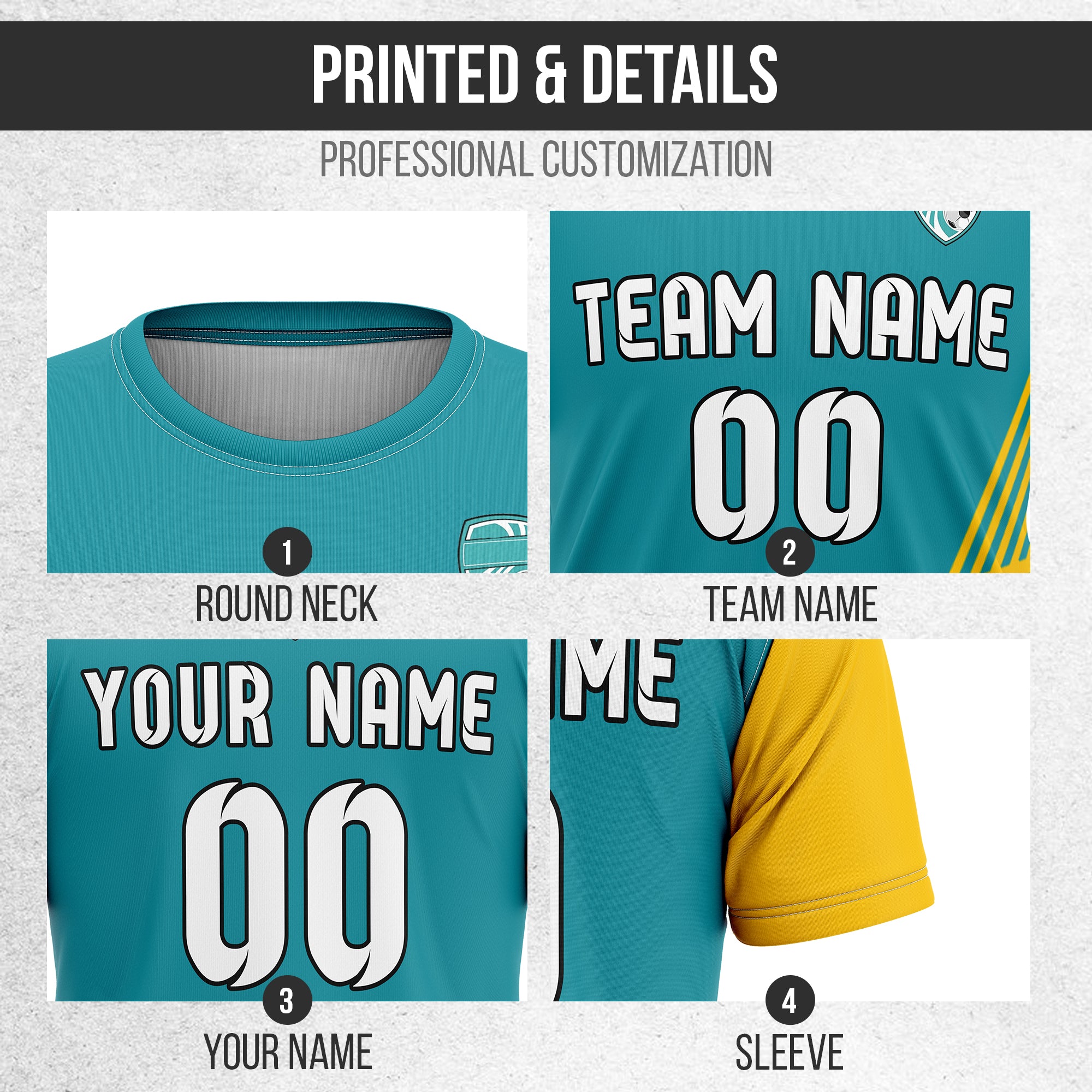 Soccer Jersey - Round Neck - Side Pattern - Design 4 - Teal