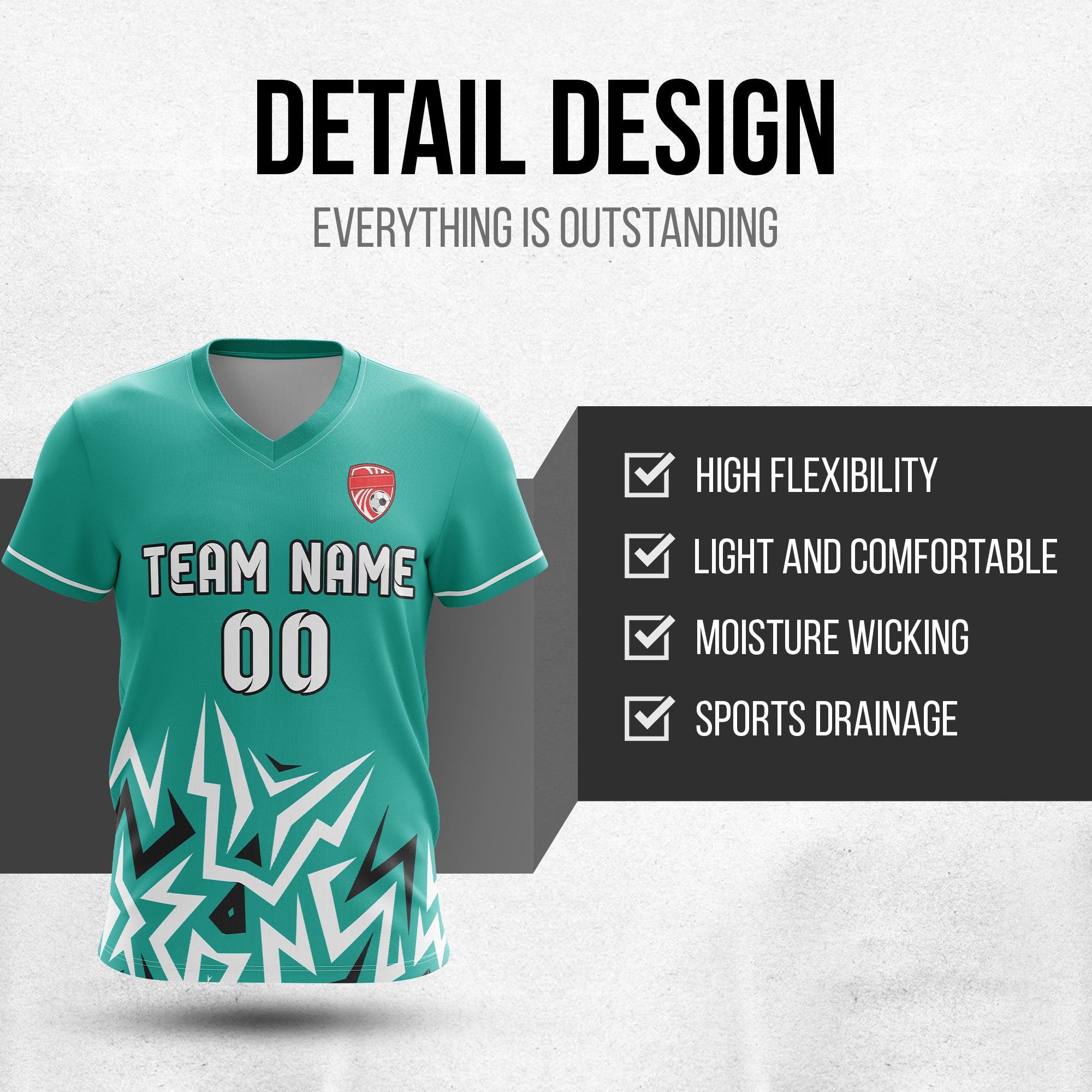 Soccer Jersey - V Neck - Side Pattern- Design 1 - Teal