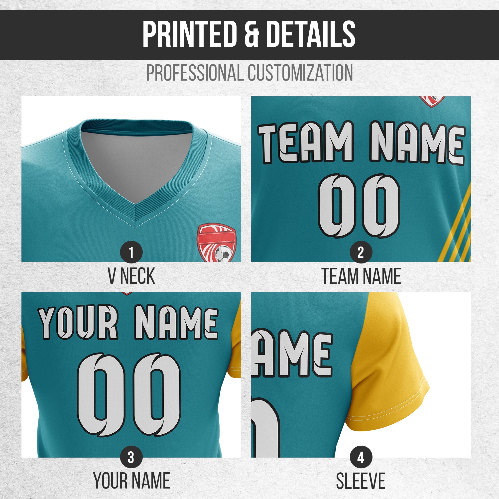 Soccer Jersey - V Neck - Side Pattern- Design 4 - Teal