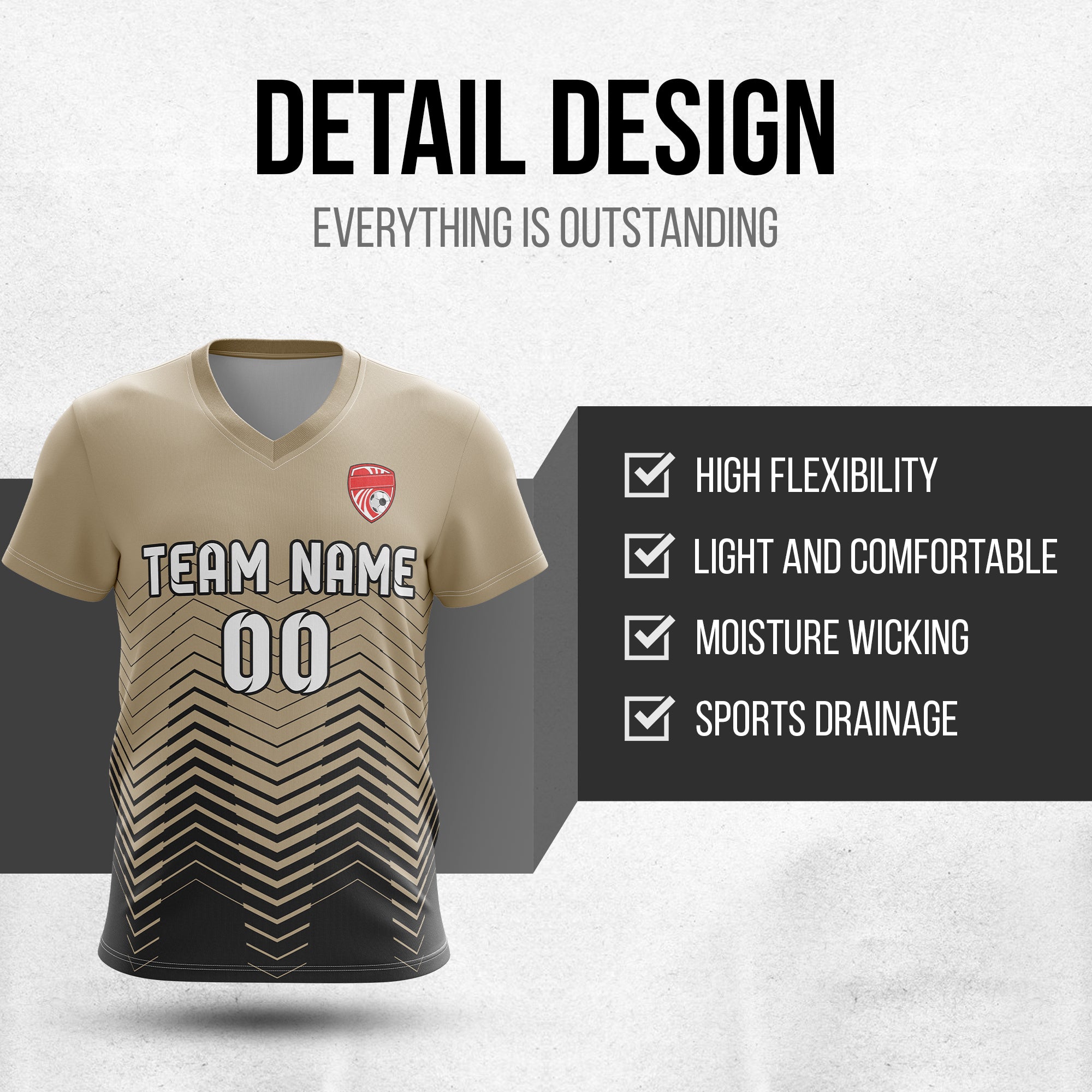 Soccer Jersey - V Neck - Side Pattern- Design 5 - Khakhii