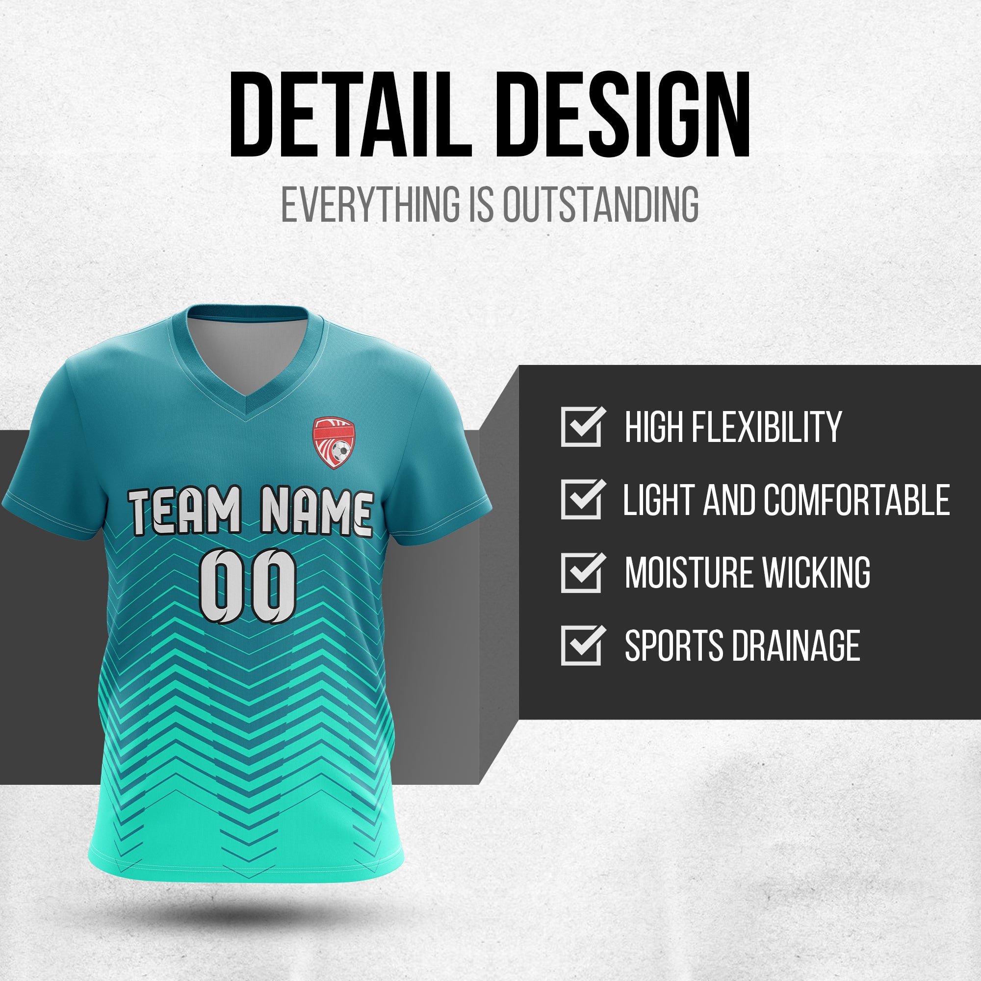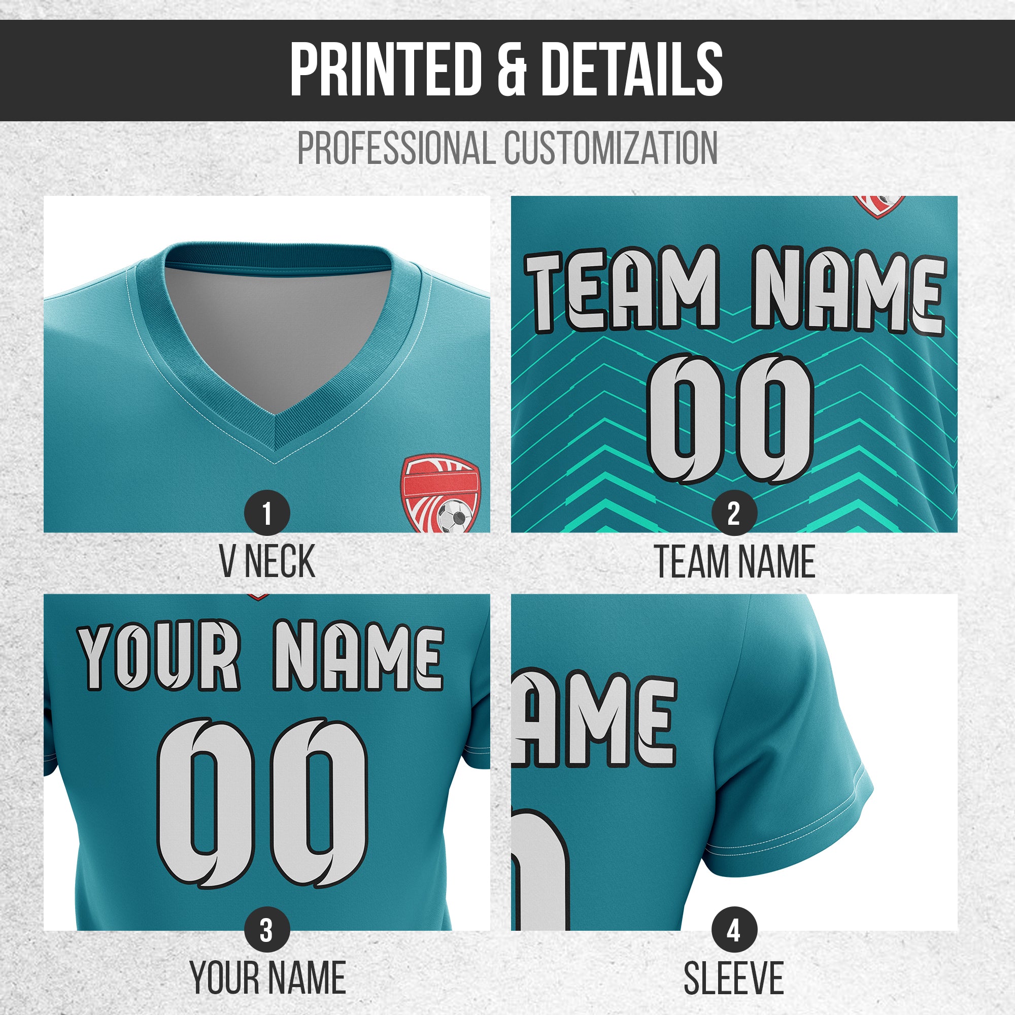 Soccer Jersey - V Neck - Side Pattern- Design 5 - Teal