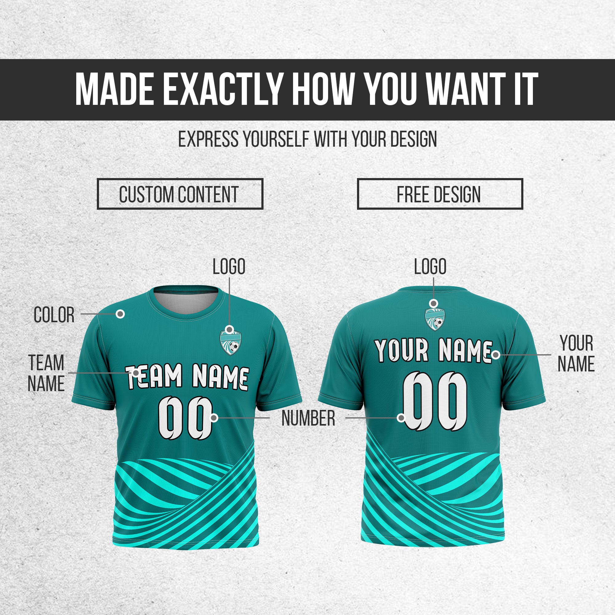 Soccer Jersey - Round Neck - Stripes - Design 4 - Aqua