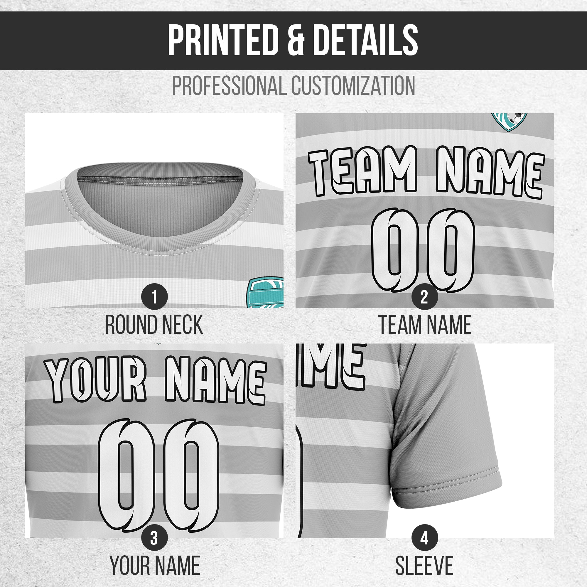 Soccer Jersey - Round Neck - Stripes - Design 2 - Grey