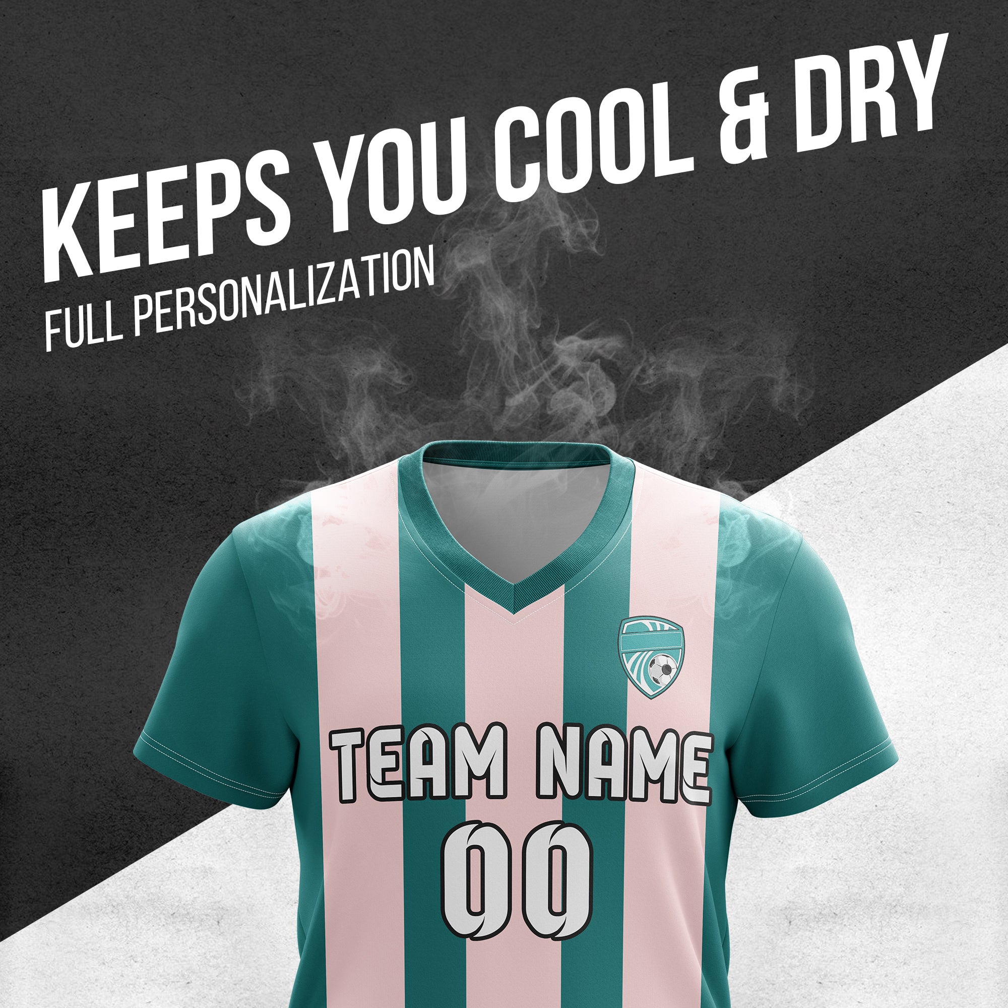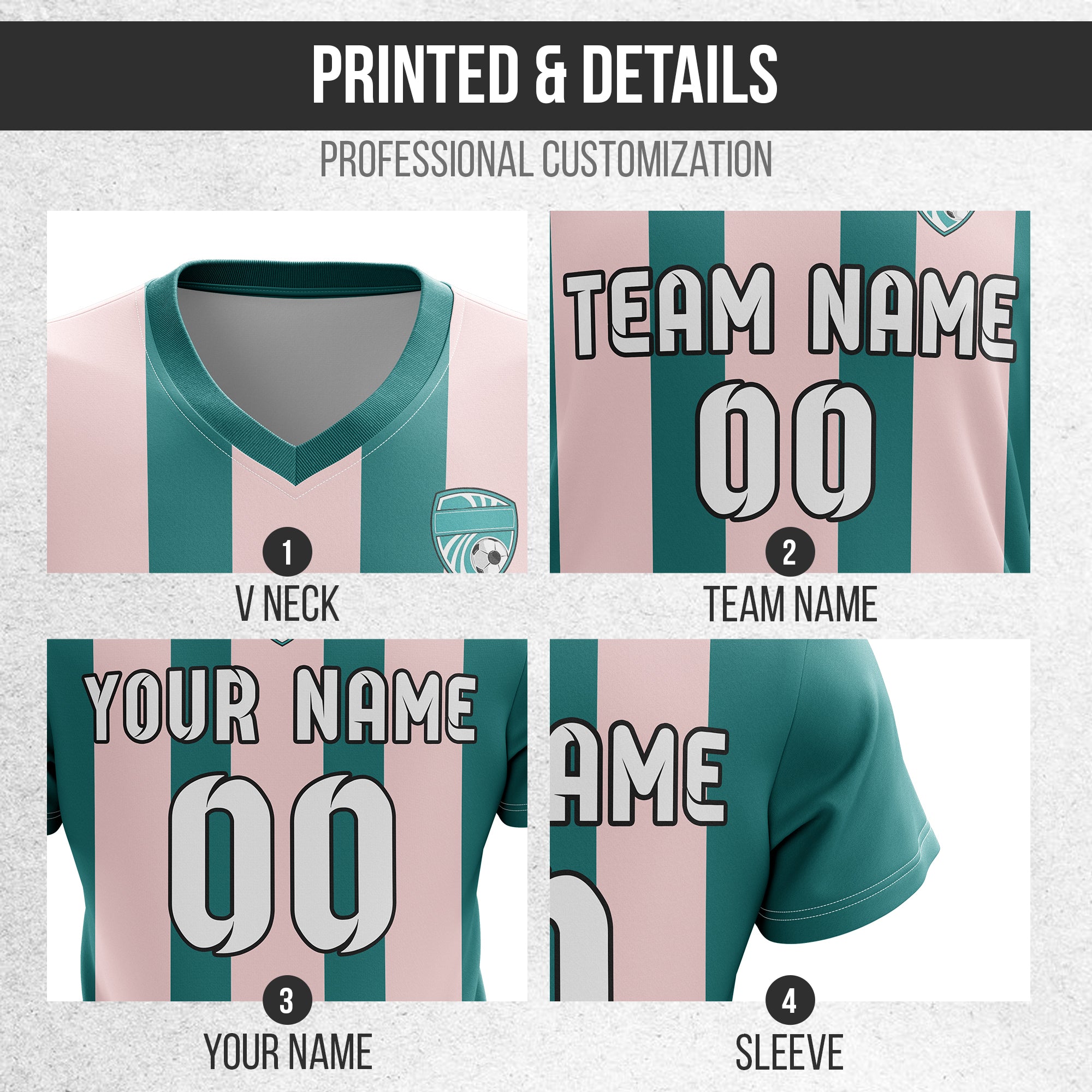 Soccer Jersey - V Neck - Stripe - Design 1 - Teal