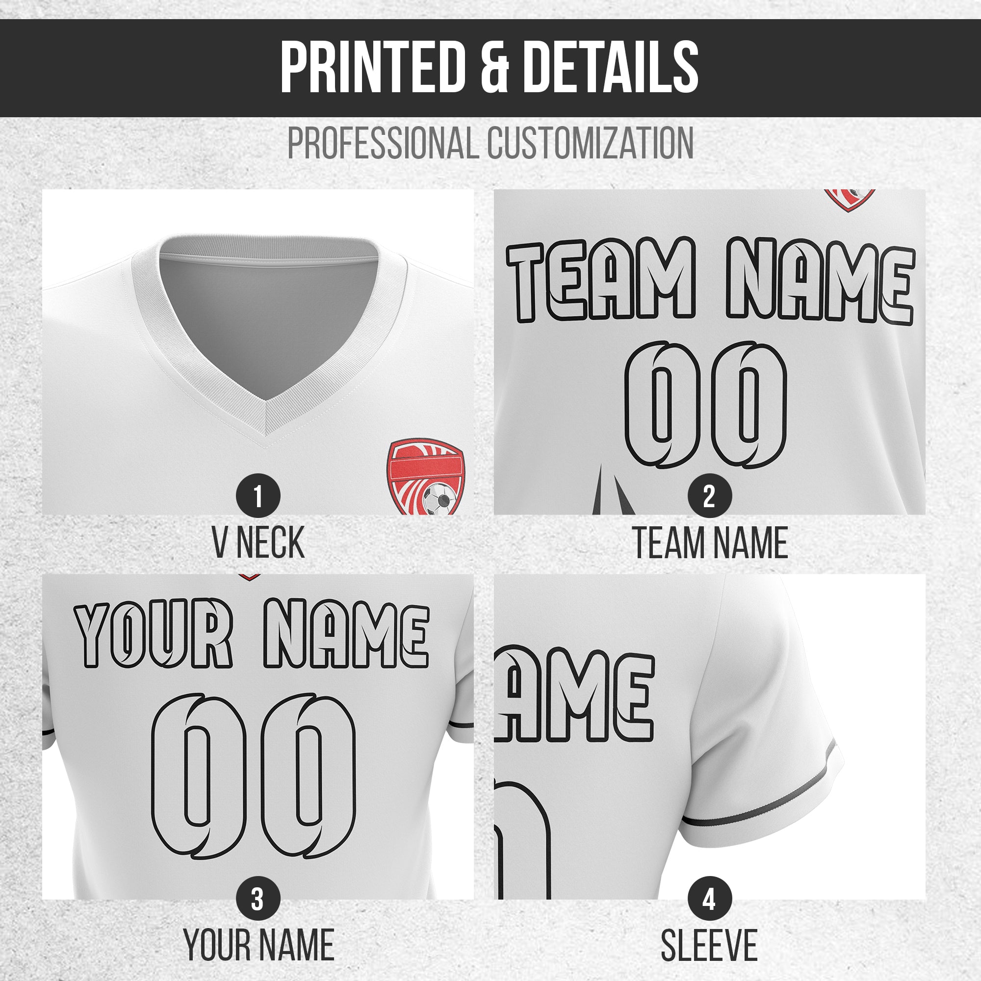 Soccer Jersey - V Neck - Side Pattern- Design 1 - White