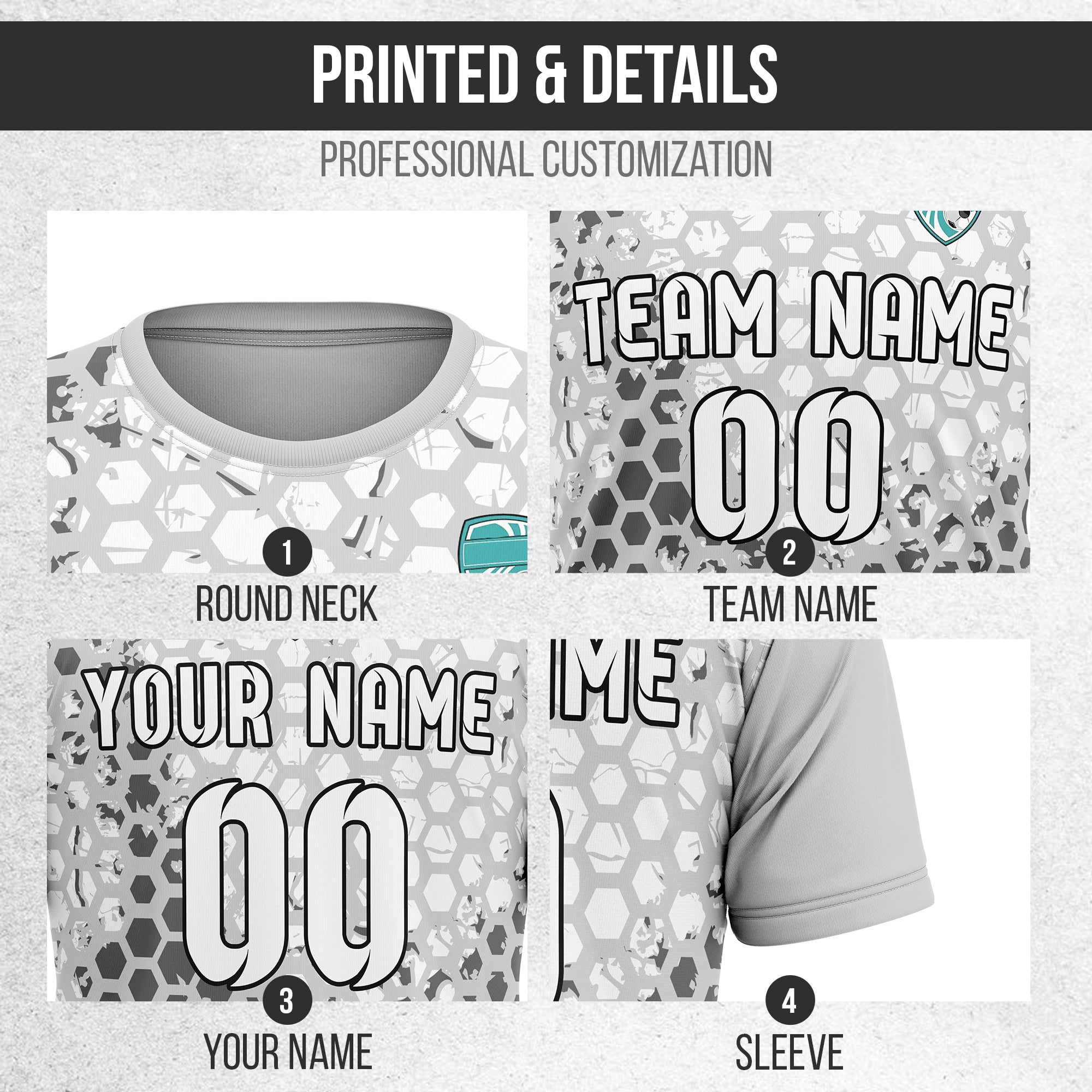 Soccer Jersey - Round Neck - Full Pattern - Design 1 - Grey